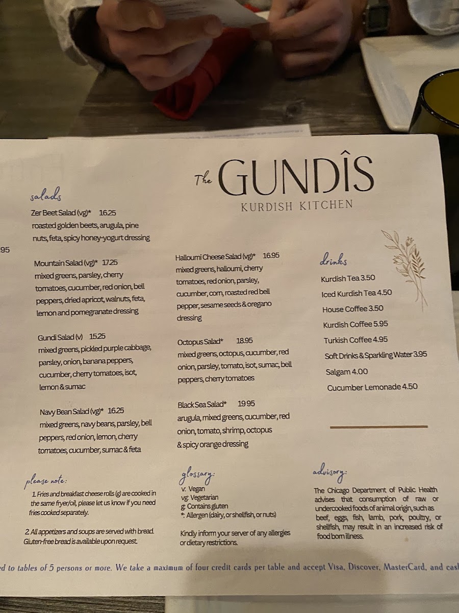Welcome to The Gundis Kurdish Kitchen, located in the heart of Chicago at 2909-11 N Clark St. This exceptional eatery invites you on a culinary journey through Kurdish flavors, boasting a menu that celebrates the rich heritage of its cuisine.